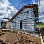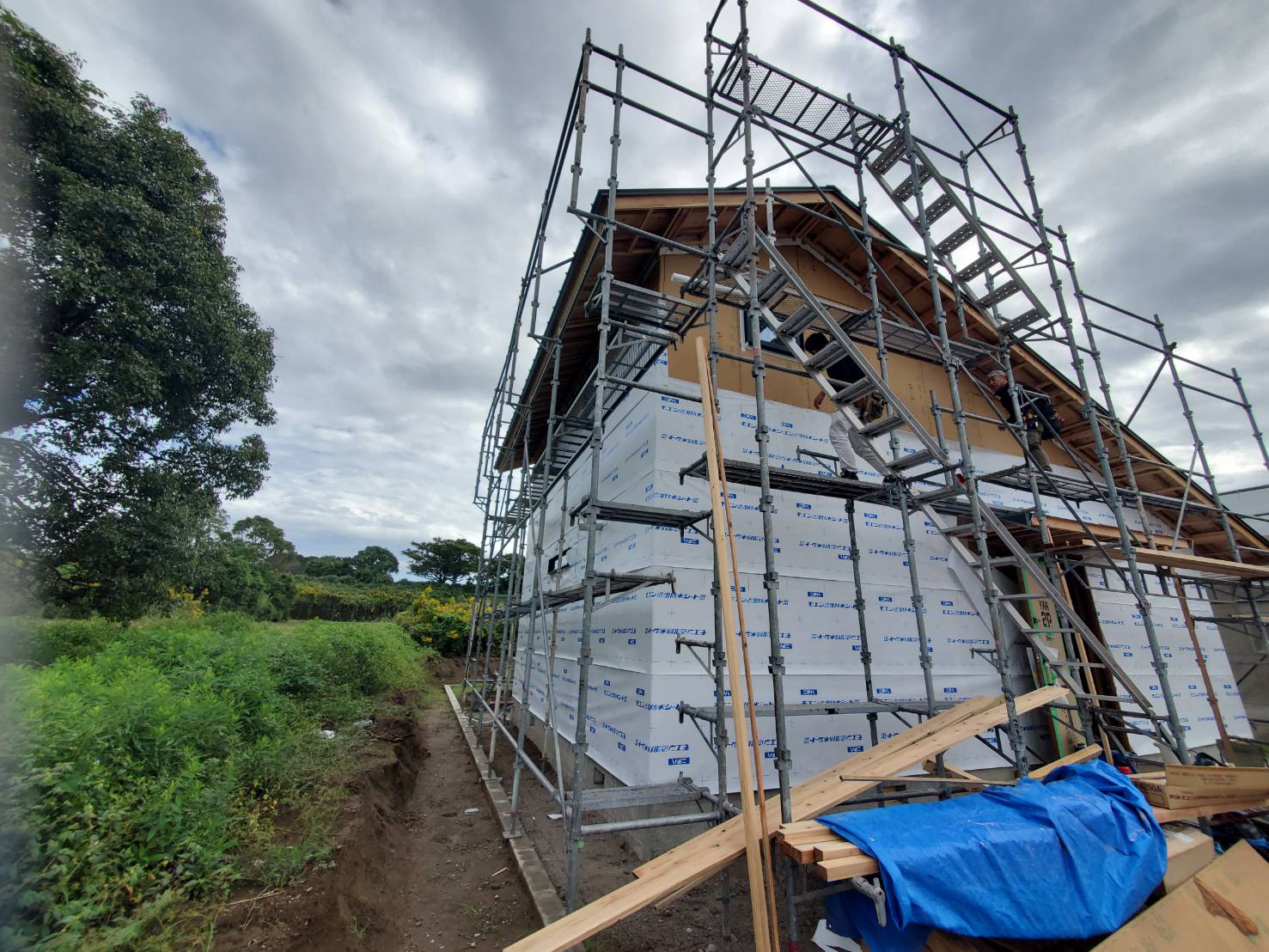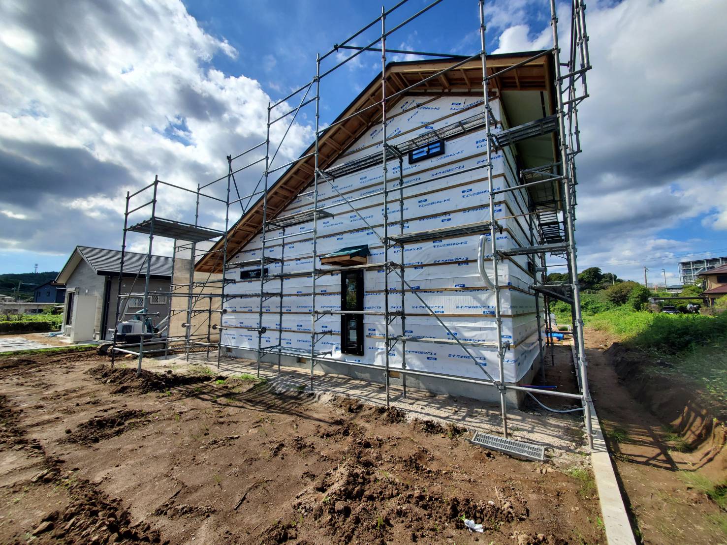 屋根にはハットヘルスも施工中、建物の形が少しずつ見えてきました✨ これから仕上げ工程へと進み、さらに完成に近づいていきます🏡 完成が楽しみです😊🌈✨