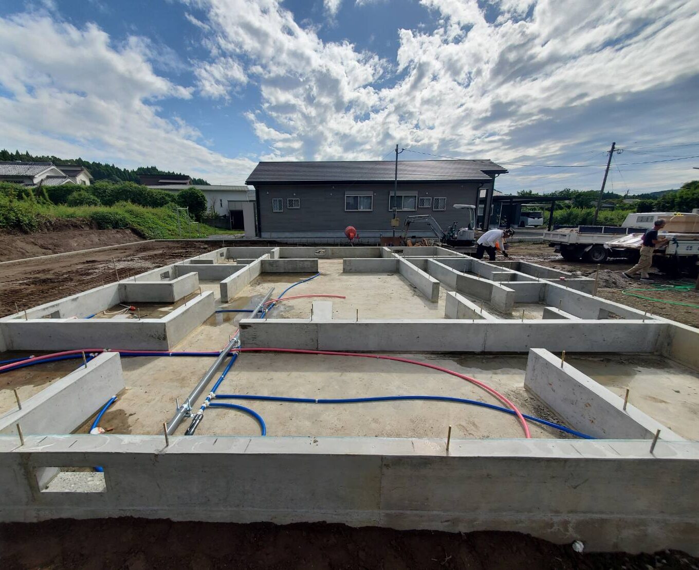 基礎を見ていると、「ここが玄関で、ここがリビング」とご家族の想い描くお家が、これからドンドン完成に近づいていきます